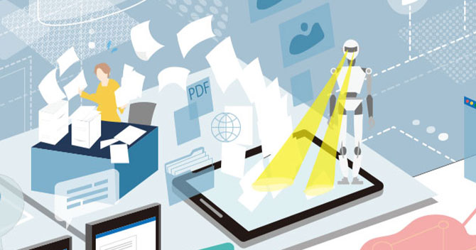 様々な業務をデジタルに解決するRPA(ロボティック・プロセス・オートメーション)やAIが、フローを変え、生産を変え、会社のありかたを、進むべき未来をも変革していきます。